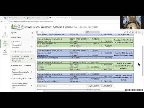 Treasurer Brian told the Sawyer County finance committee that delinquent property tax totals are about $1,846,000, roughly 24% higher than last year; he attributed the increase to mail delays and ownership transfers, and said notice-of-commencements would be filed April 28.