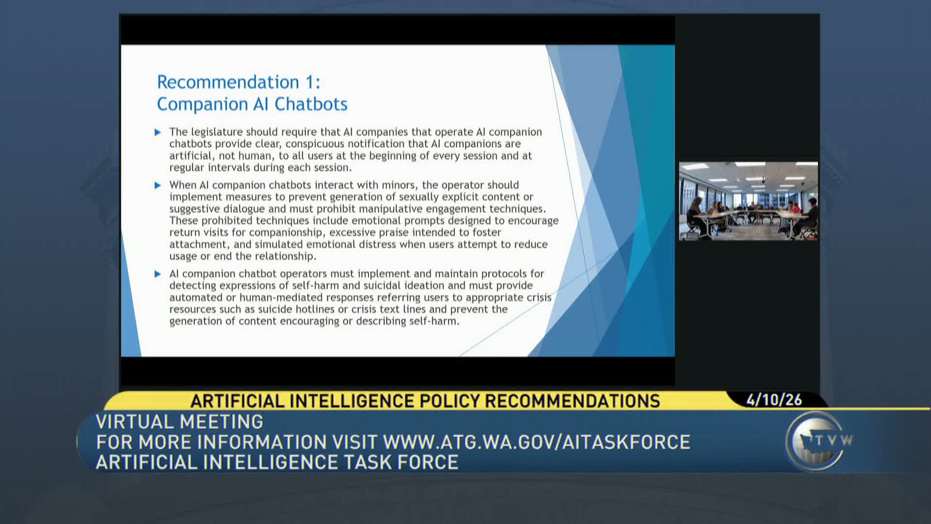 Task force weighs 6‑month labor notice for state AI use and scope of guidelines