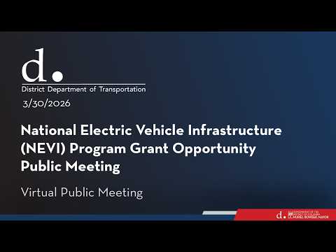 Tasim Malik, of the District Department of Transportation's Environmental Programs Branch, outlined a DDOT NEVI (National Electric Vehicle Infrastructure) grant opportunity with $9,600,000 available and a May 26 application deadline. DDOT said the round targets five remaining FHWA-designated Alternative Fuel Corridor segments in the District and aims to reach 'fully built out' status before moving to a community build-out phase.