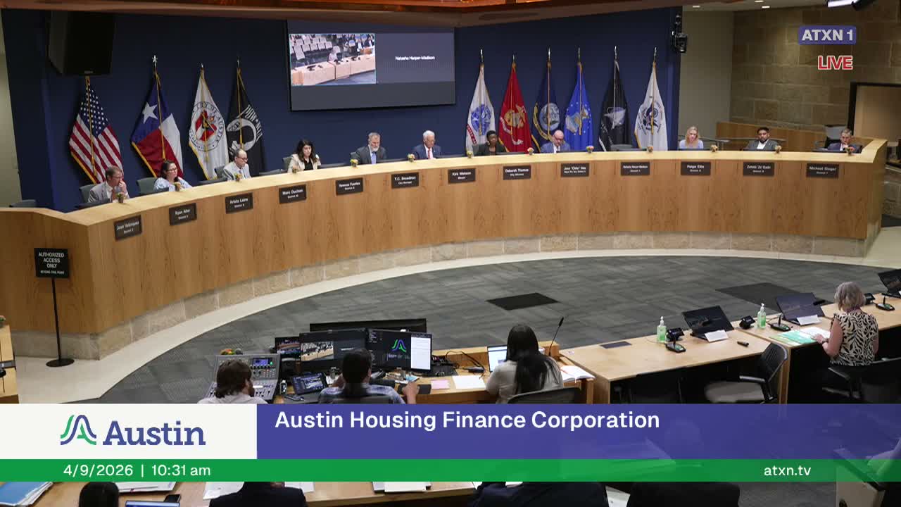 The Austin Housing Finance Corporation board adopted an 11‑item consent package on April 9 that authorizes loans, capital contributions and an amendment to a local housing‑voucher agreement intended to support affordable and supportive housing across the city.