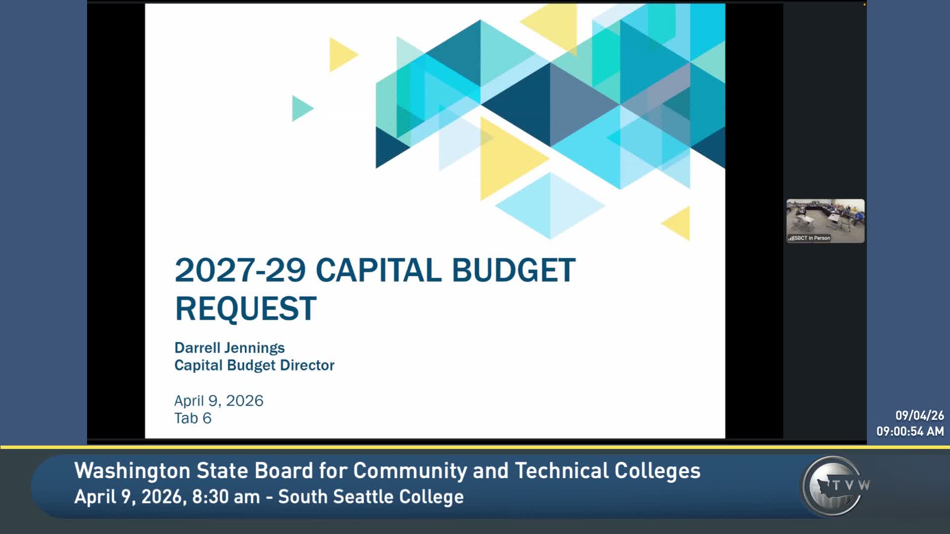 The State Board reviewed and approved its proposed capital budget request for the 2027–29 biennium, a prioritized list staff said targets about $600 million and balances major and minor projects across the community and technical college system.