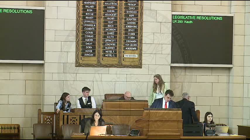 Each resolution was placed to a vote and adopted (reported tallies: LR 293 — 43 ayes, 0 nays; LR 296 — committee noted 7–0, adoption recorded; LR 422 — 47 ayes, 0 nays). The measures are formal legislative requests and do not carry the force of law but send the Legislature’s positions to Nebraska’s congressional delegation and the president.