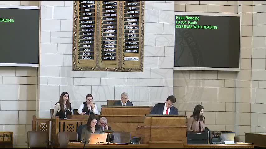 Senators on the floor debated AM 3142, an amendment offered to LB 8 34 that would impose a uniform property‑tax growth cap for political subdivisions. The amendment — described by sponsor Senator Hansen as a 2.5% cap plus a ‘real growth’ percentage with a biennial averaging rule and a 60% voter override — was the focus of an extended exchange of arguments about local control, public‑safety funding and state responsibility for tax relief.