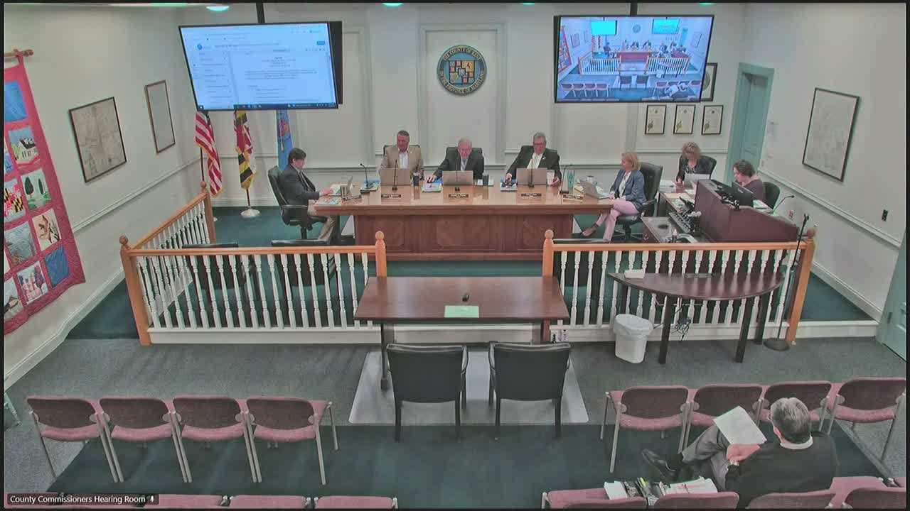Approved (voice vote/unanimous unless noted): • Consent agenda: 13 consent items including minutes and routine departmental items (motion approved). • Special‑event liquor licenses: Sultana Education Foundation (04/03/2026 and 04/25/2026); Kent Soil & Water Conservation District (04/10/2026); Washington College Ducks Unlimited (04/12/2026); Community Volunteer Fire Company of Millington (multiple events). Each application was opened for public comment and approved by motion. • Fingerprinting equipment: HR Director Michael Sutton requested $10,013 from contingency to purchase new fingerprint hardware and first‑year maintenance; motion approved. • Track recidivism reduction program: commission authorized submission of the FY2027 grant application; presenters said to‑date enrollees have had 0 rearrests over six months, though the program is early. • Pre‑procurement of sheriff patrol vehicles: authorized staff to pre‑order up to five dealership vehicles for FY2027 and delegated signature authority to the county administrator (see separate article for detail). • Parks & Rec — Wharton Park open‑space projects: authorized contingency funds of $10,840.75 (county share 10%) so dugouts and a dog park can open this season. • Community center generator radiator replacement: contingency authorization of $3,798.16 to replace a failing radiator and avoid seasonal risk to emergency shelter operations. • Everton warehouse: authorized advertisement of a public hearing to amend the comprehensive water and sewer plan to include map 31 parcel 6 so the Everton warehouse property can receive allocation; the hearing will be advertised and public comment accepted. • Tall Chester pump station: approved a direct replacement contract with Freemire & Associates for a Smith & Lovelace pump (2,000 series) at a total cost of $202,846, which staff said reduces cost and schedule risk compared with an earlier plan.