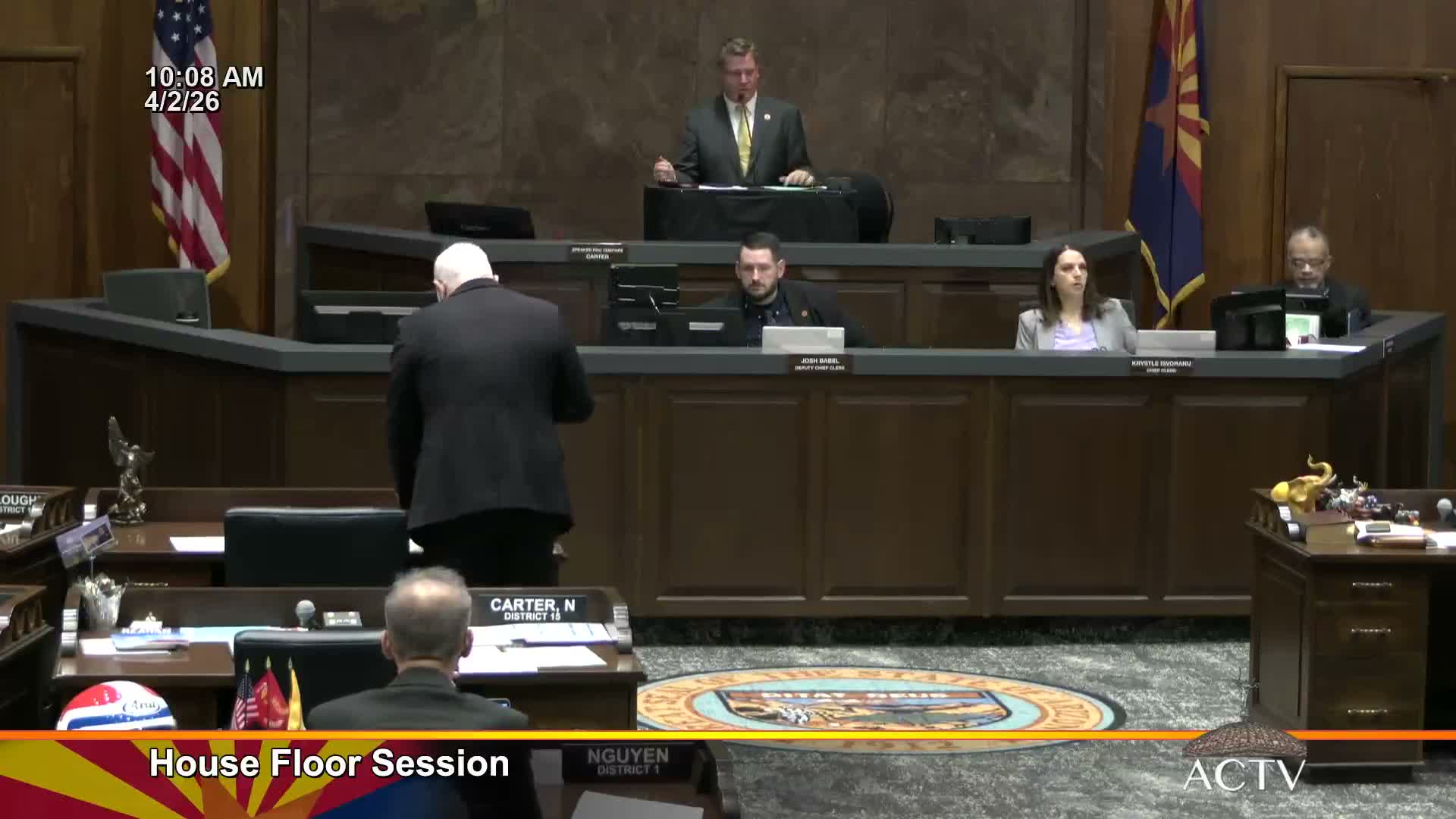 During the April 1 session the House recorded votes and placed multiple Senate bills on third reading following committee reports.
