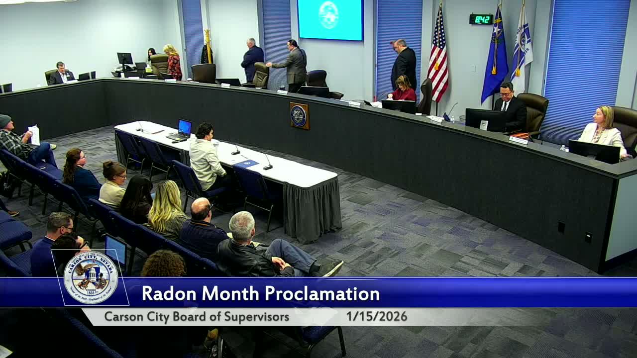 The Carson City Board of Supervisors on Monday proclaimed January 2026 as National Radon Action Month and received an annual report from the University of Nevada, Reno Cooperative Extension that emphasized local outreach and free testing.