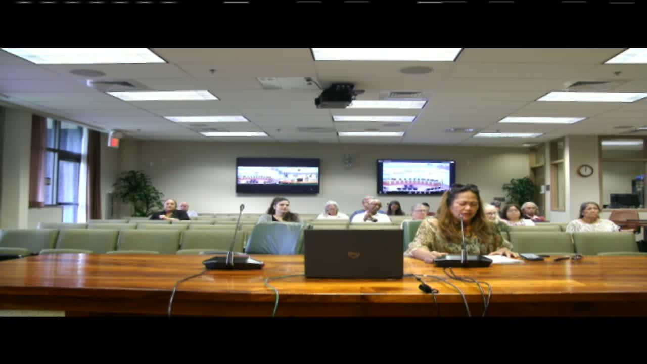 Housing Administrator Kehau Costa and Assistant Housing Administrator Keiko Mercado told the committee the purchases were made using U.S. Treasury Emergency Rental Assistance (ERA2) funds and other state and federal sources, and that acquisitions were completed last year to meet expenditure deadlines. Costa said the department issued a request for proposals and sought nonprofits with at least five years’ experience. She said purchased properties are deed‑restricted for affordable housing and that leases place repair, maintenance and management responsibilities on the lessee. “We will manage our properties in compliance with all federal and state and county laws, including zoning,” Costa said, adding the office conducts site visits and annual compliance reviews.