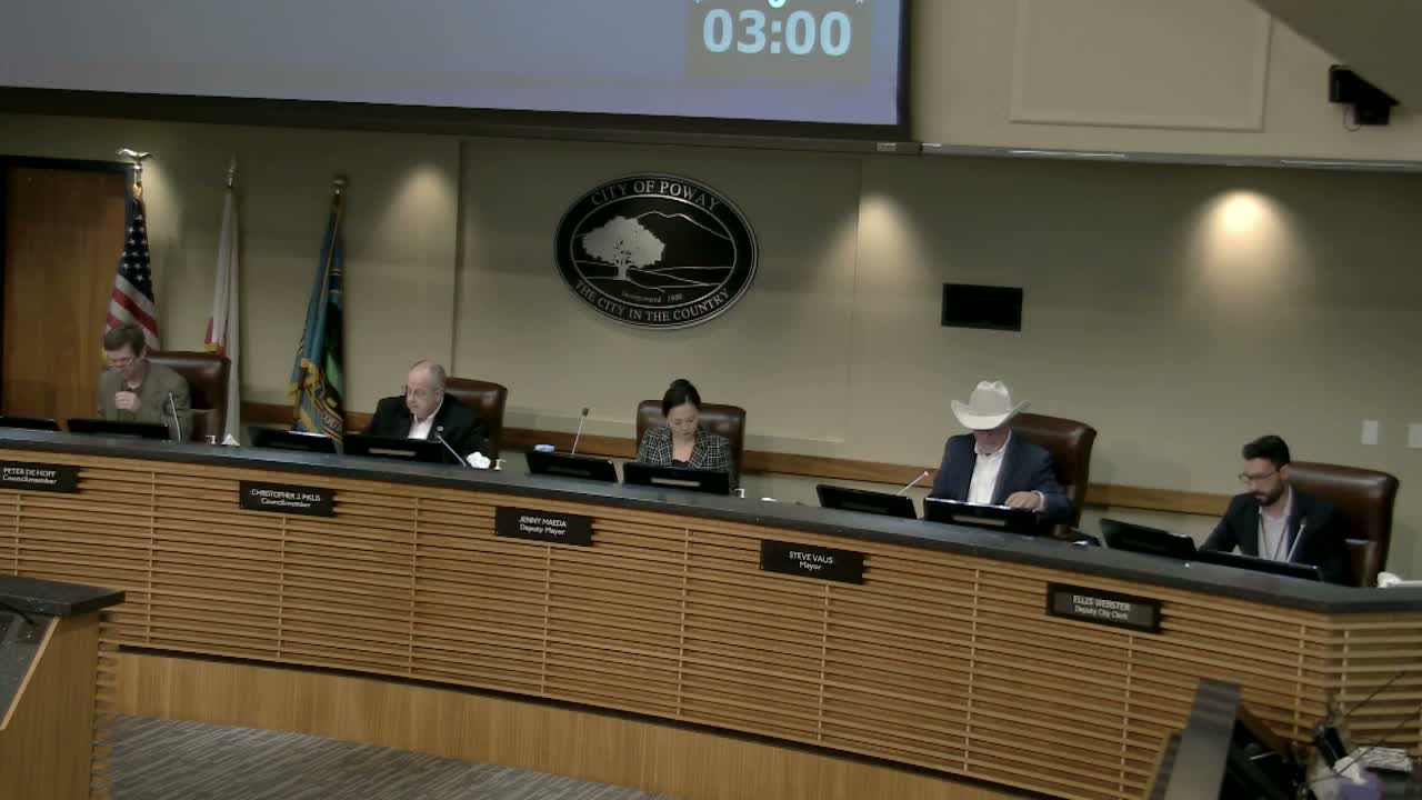 Principal Civil Engineer Jonathan Schabel presented the City of Poway’s capital improvement program to the council on March 3, describing 78 active projects with a multi-year funding allocation of nearly $69,000,000 across streets, drainage, public facilities, water and sewer. "The city's current capital improvement program was approved in June and includes 78 total projects with a multi-year funding allocation of nearly $69,000,000," Schabel said.