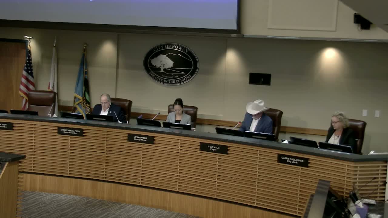 The council approved a three‑year agreement with Fireworks America to lock in pricing for the annual July 4 show and heard a presentation of expanded Old Poway Park programming that will include train rides, reenactors and a citywide Red, White, and Wow decorating contest.