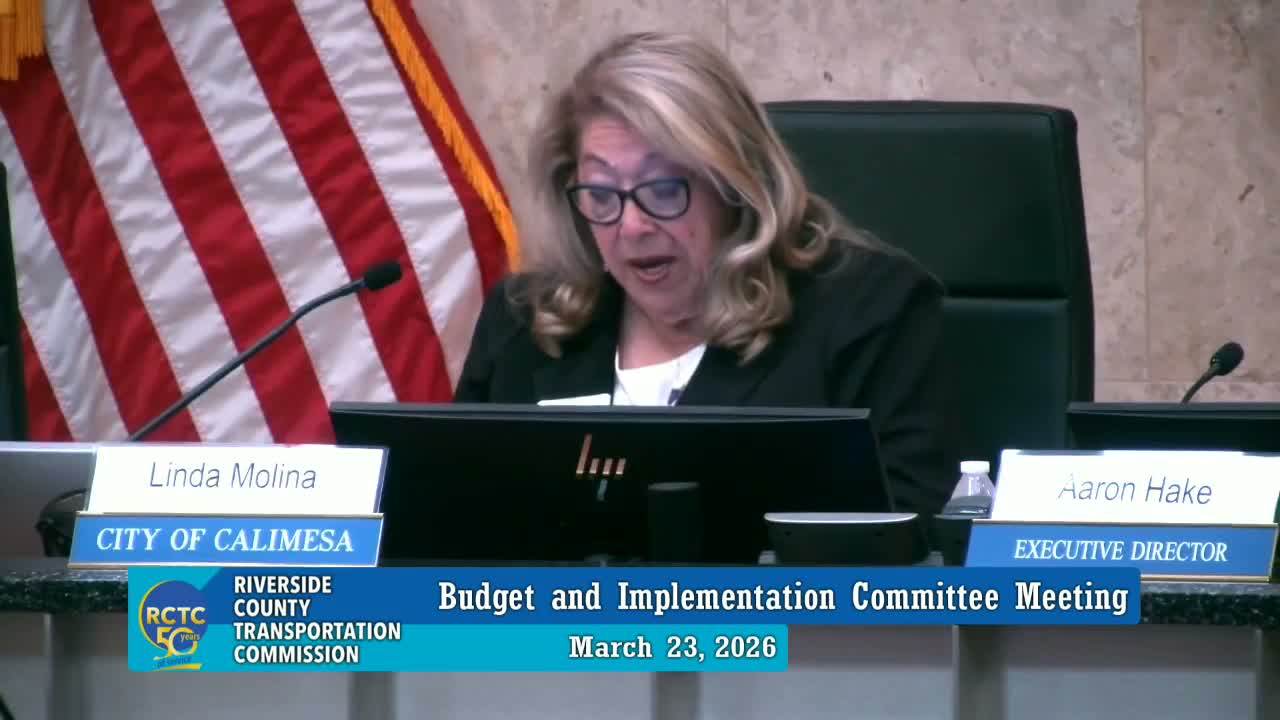 Sheldon Peterson, RCTC’s rail manager, asked the Budget & Implementation Committee to adopt several resolutions and execute master agreements required by Caltrans and CalSTA to access state funding for regional rail projects. Peterson said the package would support the Coachella Valley Rail, South Perris Station double‑track, Perris Valley double‑track, and the Mead Valley Metrolink Station mobility hub and would authorize the executive director to finalize agreements after legal review.
