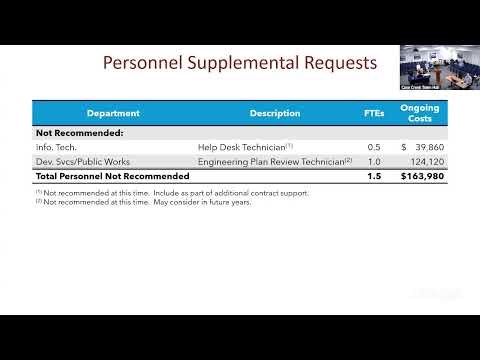 On reserves and one‑time items, staff said the budget includes both an ongoing contingency and one‑time supplementals (including a $3 million grant contingency placeholder) and warned that utility subsidies and one‑time transfers would reduce the general‑fund balance in the near term. Staff also proposed splitting a $1 million streets‑catch‑up request 50/50 across FY27 and FY28 and recommended a consulting audit to identify CIP process savings and reduce scope‑change costs.