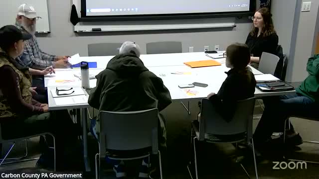 County staff announced a $15,000 OSI Appalachian Landscapes catalyst grant to develop a climate-informed conservation plan for Carbon County and described outreach plans including rack cards, QR placards, an outdoors expo presence and a proposed kickoff when the fall grant round opens July 2.