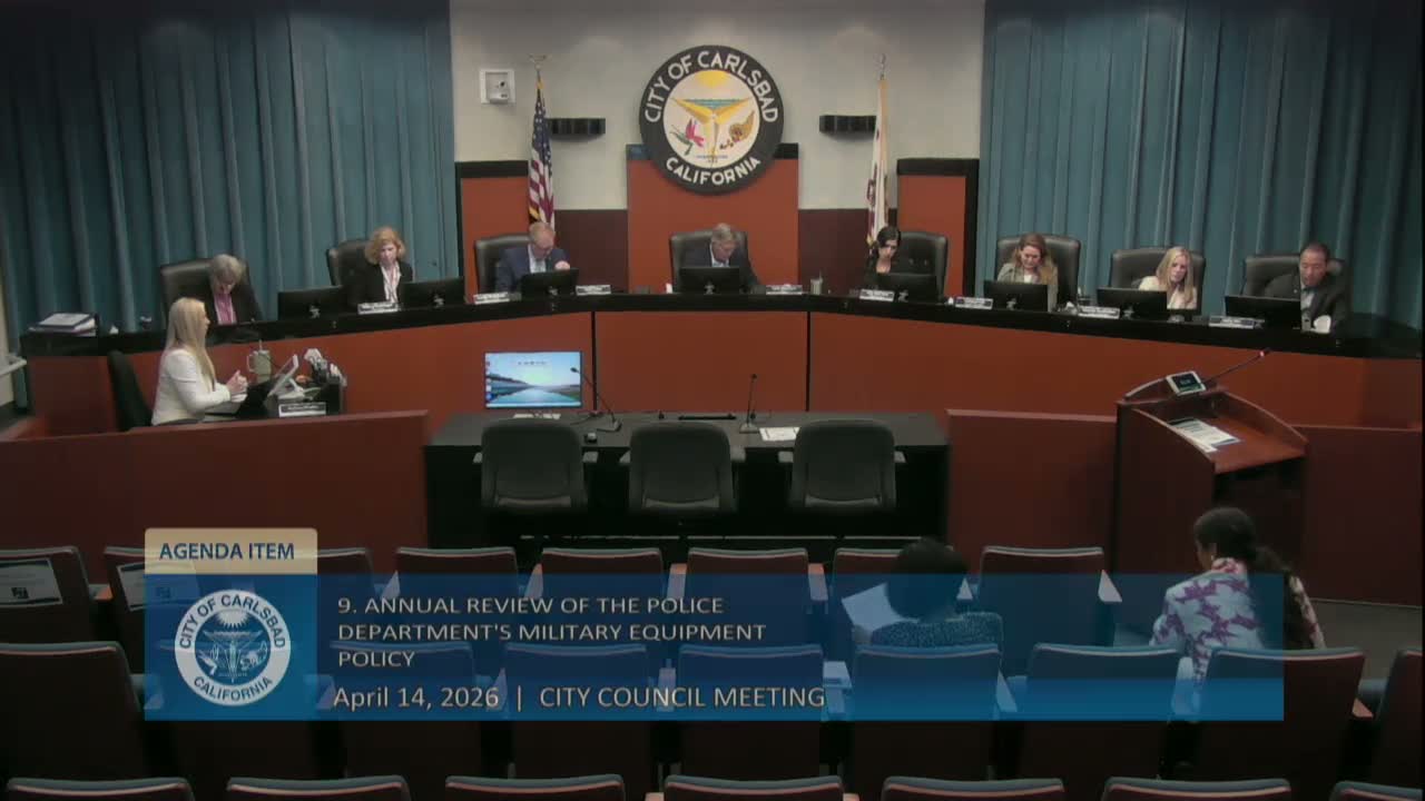 Carlsbad council introduces ordinance to renew police military‑equipment policy after annual use report