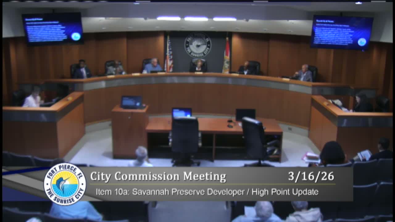 Neighbors at the commission meeting urged action after clearing and grading at the Savannah Preserve development coincided with new standing water, noise and animal problems; city staff and the developer said permits and SFWMD approvals are in place but acknowledged outstanding punch-list items and promised follow-up inspections.