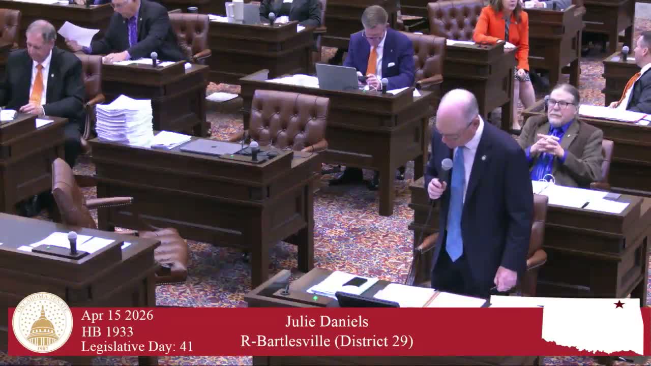 House Bill 1933 passed the Oklahoma Senate 45–0 on April 15 after sponsor Senator Weaver said the measure grew from a local tragedy and is intended to curb recreational misuse of nitrous oxide.