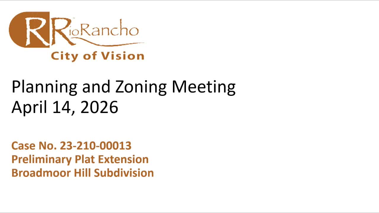 The City of Rio Rancho Planning and Zoning Board approved three routine land‑use items during its April 14 meeting: a one‑year preliminary plat extension for Broadmoor Hills, a conditional use permit to allow a boarding kennel at a commercial site, and a variance to permit development on an existing substandard 50.02‑foot lot.