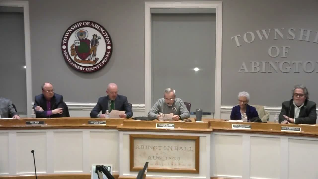 At its March 12 meeting, the Abington Township Board of Commissioners accepted Commissioner Bill Boles’s resignation effective March 31, appointed Officer Michael Coughlin to sergeant, awarded a pool-concessions contract to High Delights LLC and authorized advertising for multiple public-works bids; the finance committee also won approval for January expenditures.