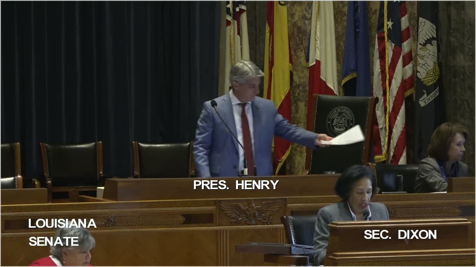 - SB256 (Morris) — Merge Orleans criminal and civil district court clerks (transition language adopted): amendment adopted; bill returned to the calendar for additional review and implementation planning.