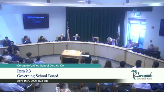 The board highlighted military-connected student experiences and recognized site and district Teachers of the Year across Coronado Unified, including the district teacher of the year, Katie Quinley.