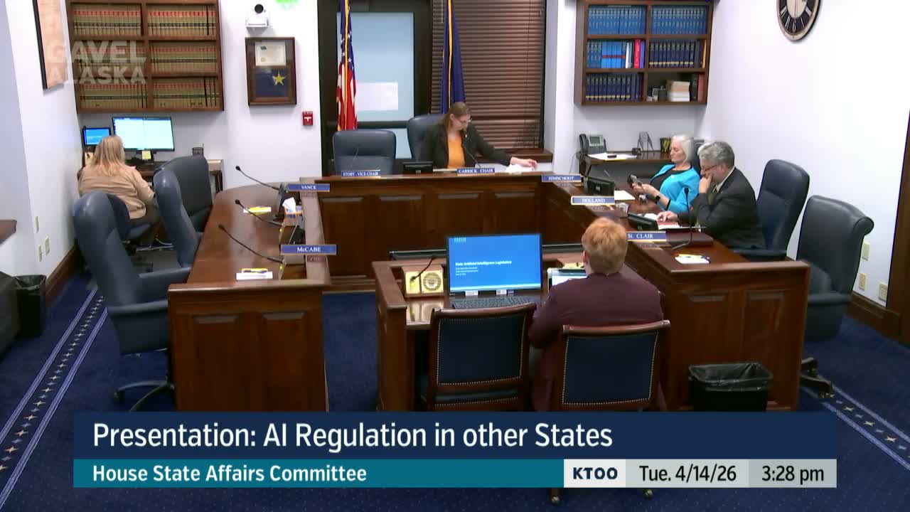 Darcy Cherry of the National Conference of State Legislatures told the Alaska House State Affairs Committee on April 14 that more than 1,100 AI-related bills have been introduced in 2026, and she outlined three state approaches—study/oversight, comprehensive laws, and targeted rules—as lawmakers asked how Alaska should proceed.