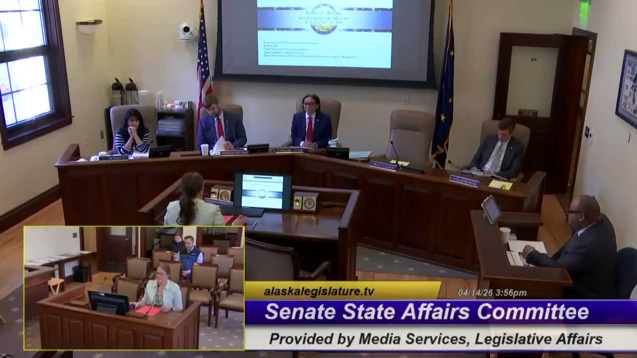 Department of Military and Veterans Affairs officials briefed the Senate State Affairs Committee April 14 on how Alaska manages disasters, when a governor may declare a state disaster, and how state and federal funding flows for response and recovery.