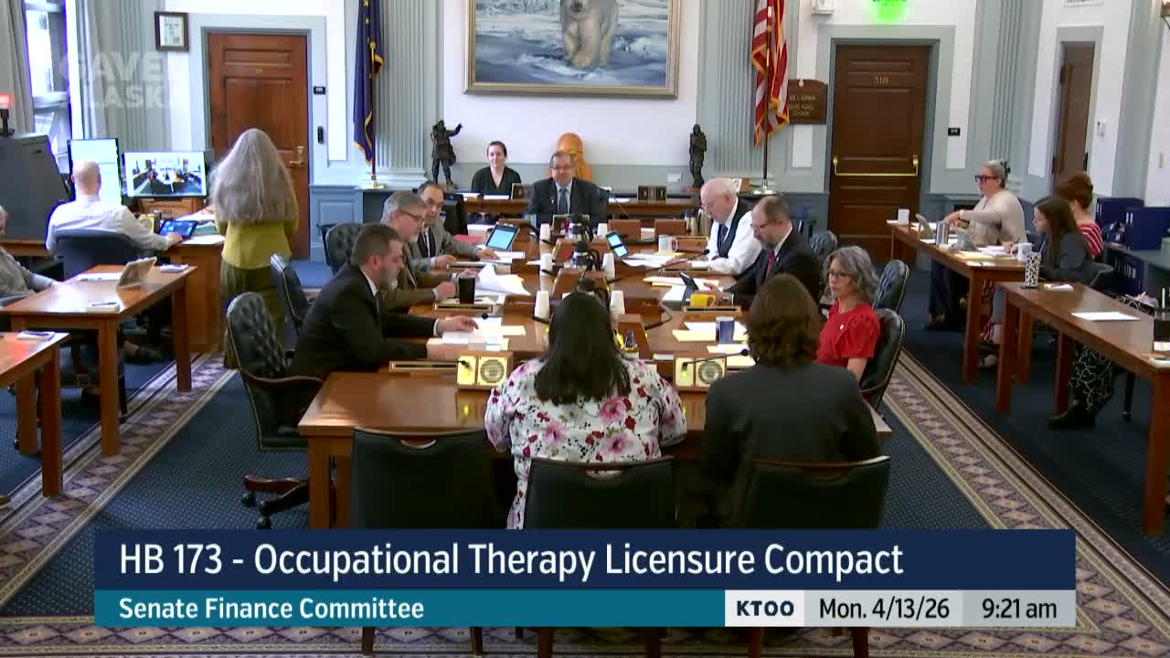 Juneau — The Alaska Senate Finance Committee on April 13, 2026 held a first hearing on House Bill 173 to join the Occupational Therapy Licensure Compact, a multistate agreement that creates a shared data system and a process for granting practice privileges to therapists licensed in other member states.