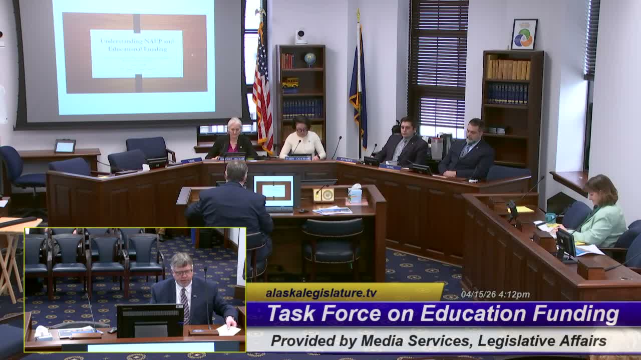 Paul Thomas, a Furman University education professor, told Alaska's task force NAEP is a sampled national measure where 'proficient' is an aspirational cut (roughly the 70th percentile), cautioned that test revisions often lower scores, and emphasized poverty and family context as strong drivers of test performance.