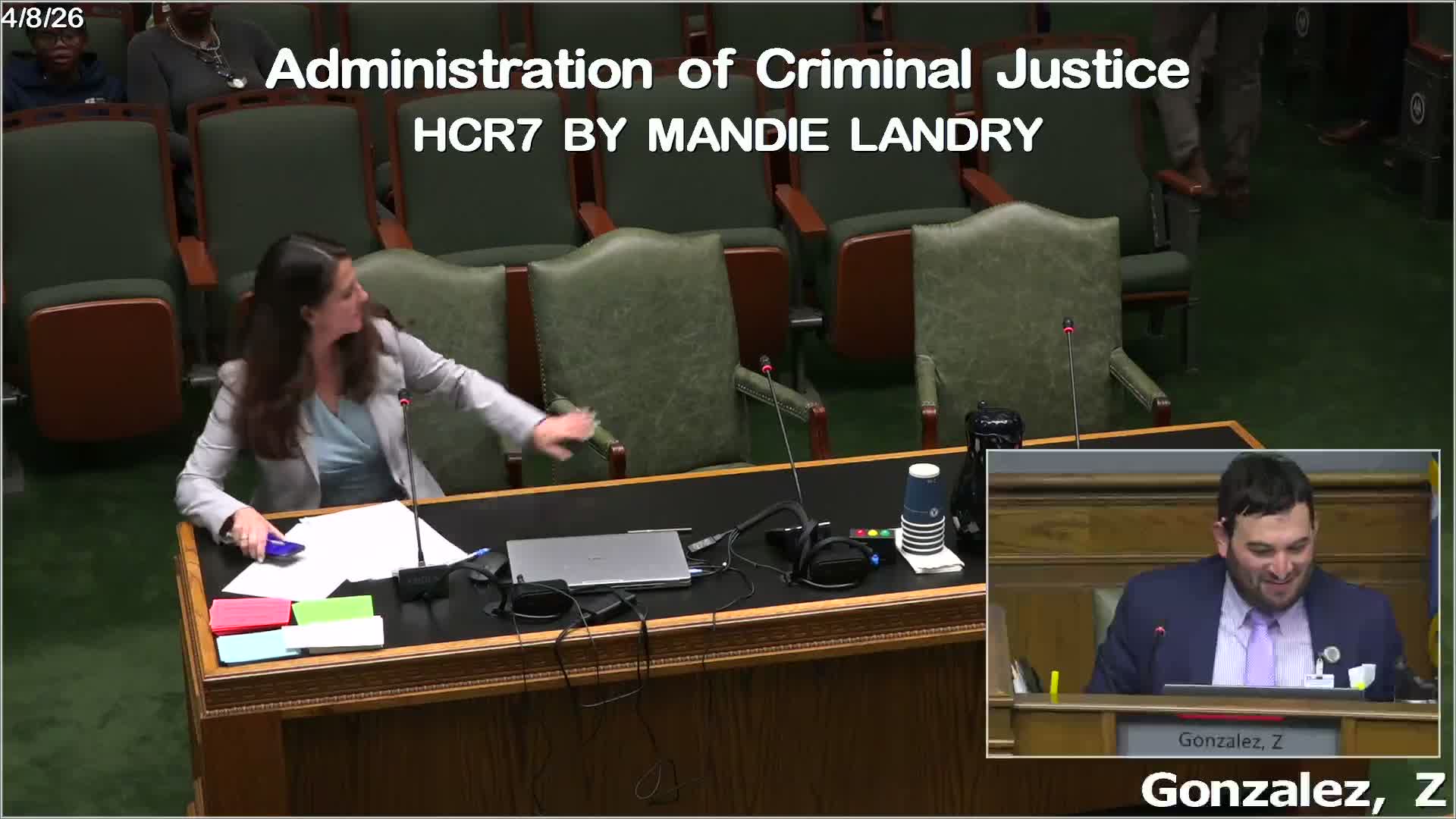 Representative Landry framed the resolution as a request for an in-depth report from the Louisiana Department of Justice to gather basic data on how many juveniles are under electronic monitoring, the duration of monitoring, and outcomes for those youth. "Electronic monitoring is a powerful tool but this technology is only as effective as the adults overseeing it," Carter said, urging lawmakers to "honor Jacob's memory and pass this concurrent resolution." The committee, with no objections, agreed to report HCR 7 favorably.