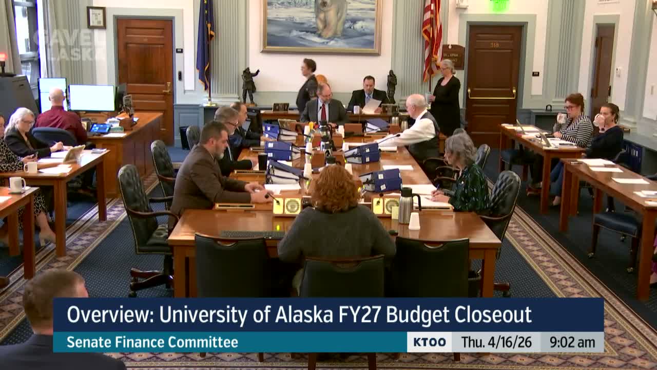 The Senate Finance Budget Subcommittee voted to adopt its FY27 closeout recommendation for the University of Alaska on April 16, approving a total funds budget of $1,169,962,000 and forwarding the report to the full Senate Finance Committee.