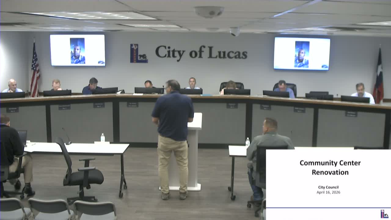 The Lucas City Council voted to authorize up to $130,141 to convert the community center into a police department, including $48,053 for construction, $30,068 for furniture and $39,062 for equipment; staff said funds come from existing budget lines and not reserves.