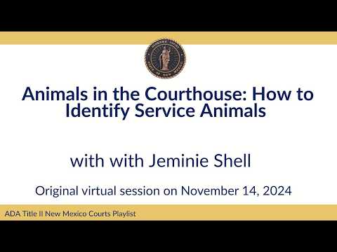 A New Mexico Administrative Office of the Courts webinar featured Gemini Schell of the New Mexico Governor's Commission on Disability explaining the ADA two-question test for identifying service animals, distinctions from housing and airline rules, state law nuances, and common courtroom scenarios including jury visibility and security screening.