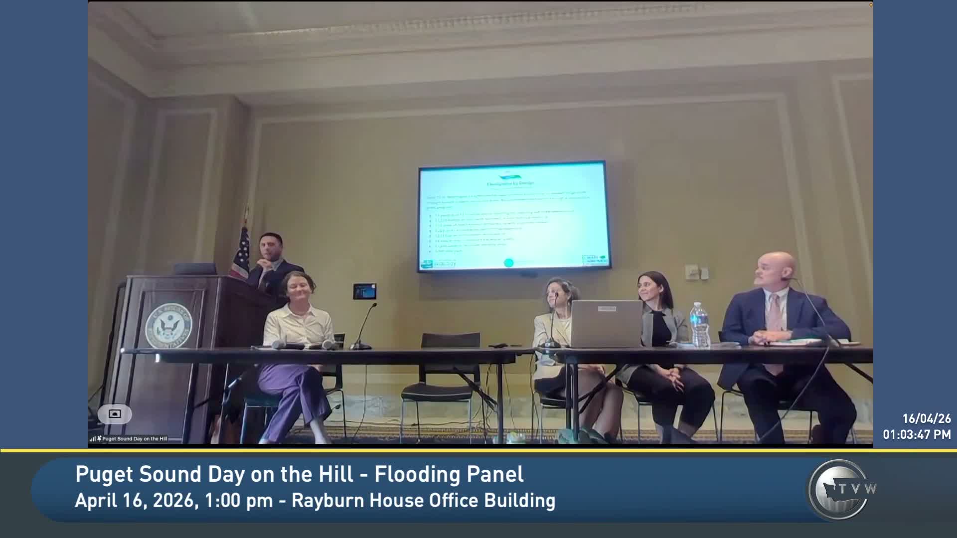 Tazio Bey, who opened the session and identified himself as a watershed codings director at a Portland-based health foundation partnering with the Washington State Department of Ecology, said locally available dollars are insufficient to meet the scale of need and that the "cost of inaction is so much higher than the cost of doing the solutions." He framed the discussion around multi-benefit, landscape-scale projects that combine flood-risk reduction with habitat gains.