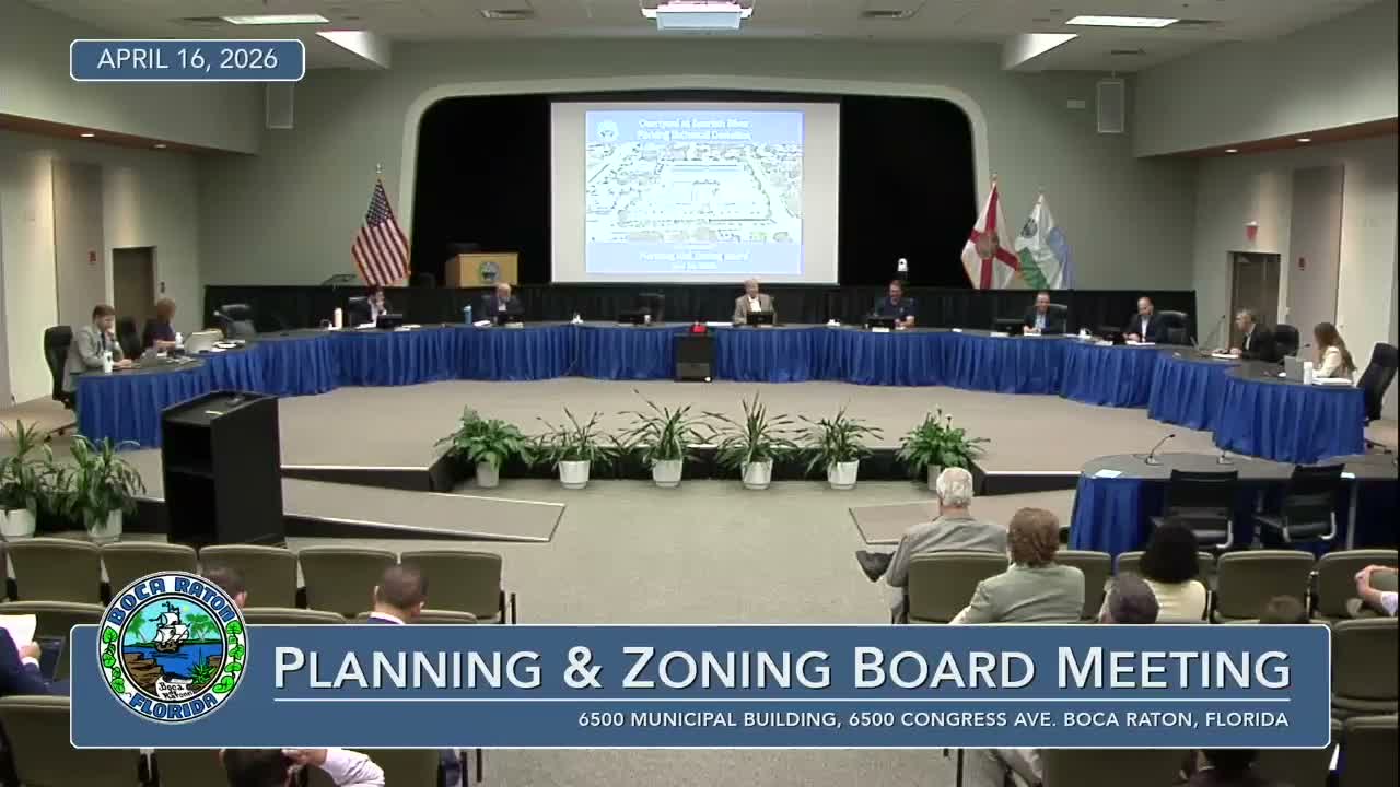 The Boca Raton Planning & Zoning Board re-elected Chair Savelle and approved a technical deviation reducing required parking for the Courtyard on Spanish River from 326 to 226 spaces, accepting an ITE-based study and staff conditions. The vote on the deviation was 6–0.