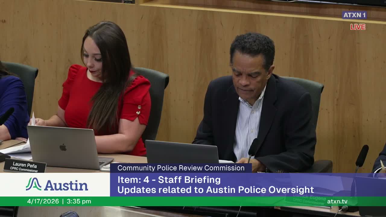 Austin Police Oversight presented a voluntary mediation program to the Community Police Review Commission that would offer confidential, virtual mediations for low‑level complaints under a two‑year MOU with the Dispute Resolution Center; commissioners pressed staff on eligibility, recording, and how outcomes will be tracked.
