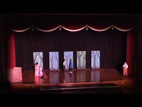 A Hopkins Middle School English teacher and drama program director welcomed the audience and introduced the schoolproduction of Into the Woods, then performed opening lines; this transcript is a school theater performance, not a civic meeting.