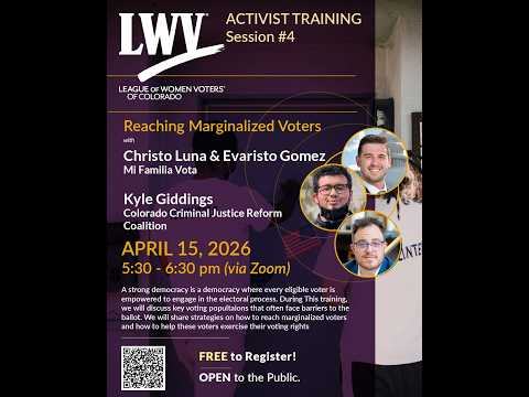 At a League of Women Voters of Colorado training session, Evaristo Gomez, civic engagement director/manager for Colorado at Mi Familia Vota (also called Mi Familia Nacion), and Christo Luna, deputy state director for Mi Familia Vota, described practical, culturally informed tactics for reaching Latino and other marginalized voters.