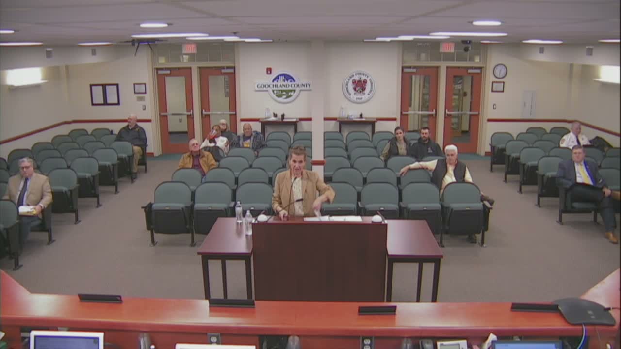 The Goochland County Board of Supervisors unanimously approved two conditional use permits that will allow detached accessory family dwellings on private parcels after staff presentations and public hearings. Both applications were recommended for approval by the Planning Commission and included standard conditions limiting the units to family members, prohibiting separate rental, requiring emergency vehicle access and smoke and carbon monoxide detectors, and setting a 10‑year expiration.
