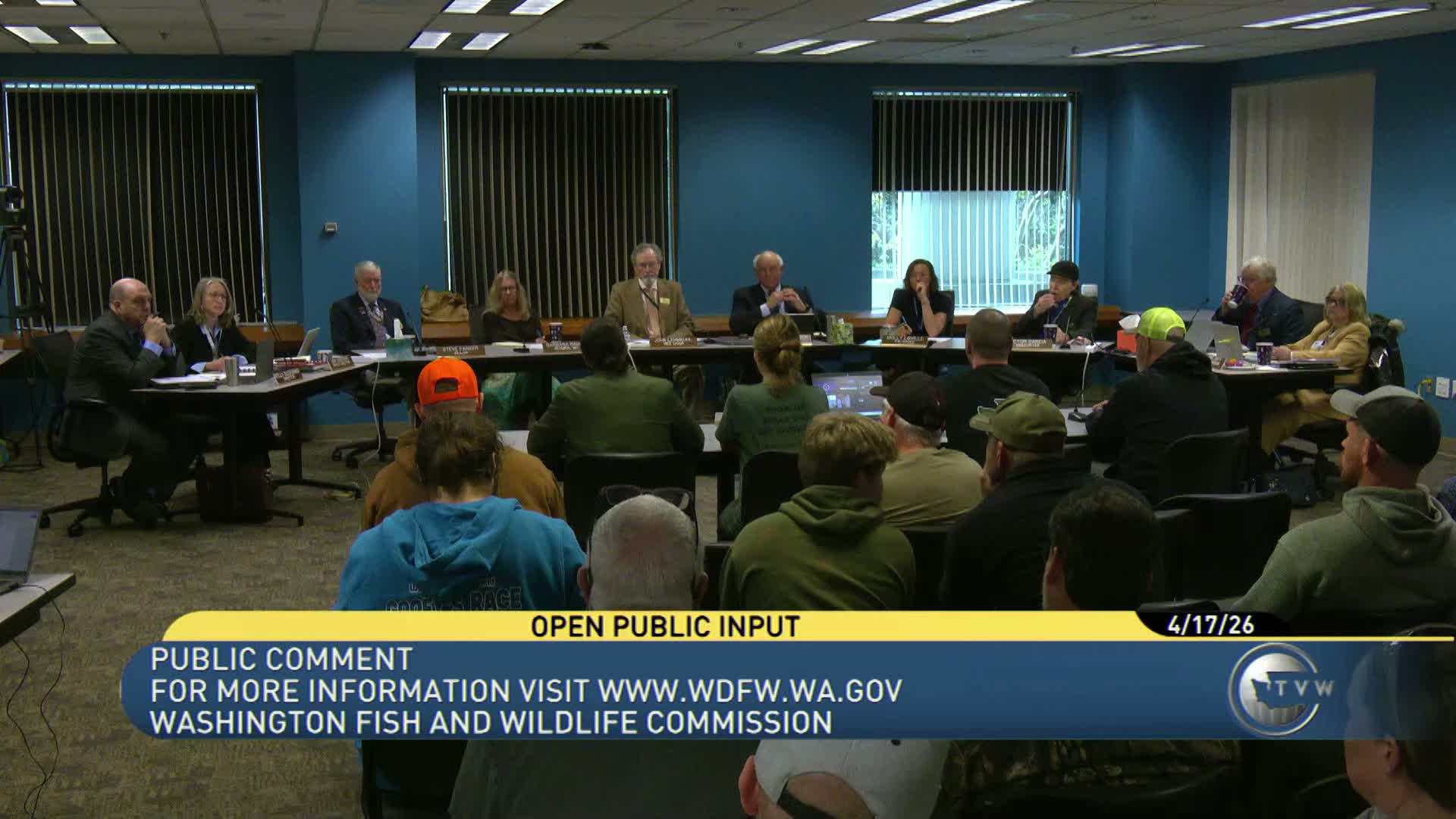 At the April 17 Washington Fish and Wildlife Commission meeting in Olympia, multiple public commenters alleged the department investigated commissioners for meeting with wildlife advocates; Commissioner Lorna Smith disclosed she filed a federal lawsuit naming the director and deputy director over alleged retaliation and First Amendment violations.