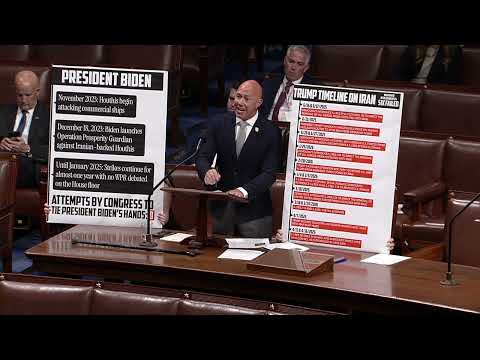 The speaker said U.S. operations launched in response to Houthi attacks on merchant vessels—cited in the transcript as "Operation Prosperity Garden," which the speaker said ran from Nov. 23 until January 2025—did not prompt Democratic-sponsored war‑powers measures at the time. "When Joe Biden was responding to merchant marine vessels being attacked, it was okay. No war power needed. Went on for about a year," the lawmaker said.