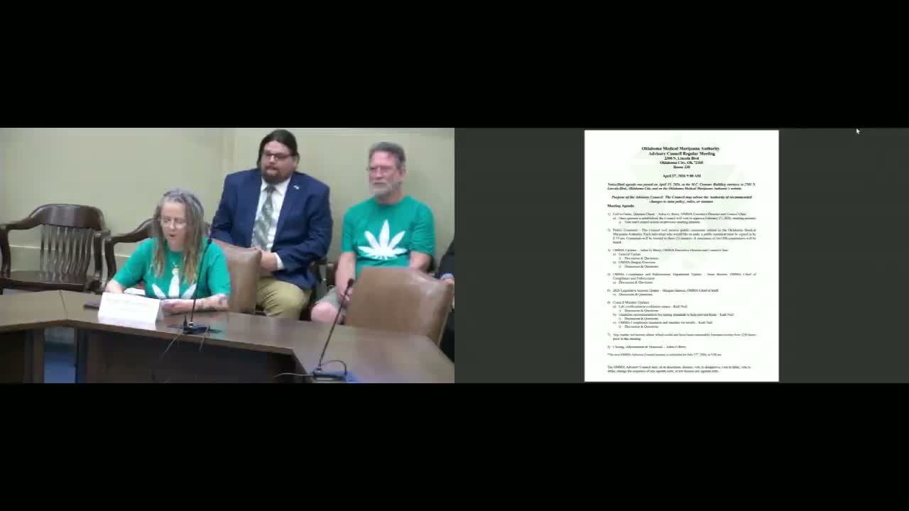 Executive Director Adria Berry told the Executive Advisory Council that the agency's QA lab has completed certain accreditations and is phasing in additional validations, while industry speakers pressed OMA on delayed timelines, THC potency inflation, and the need for a stronger Metrc-linked recall process.