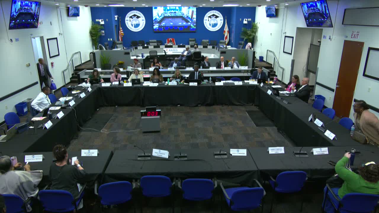 Dr. Simone Clowers, executive director for transportation, and her operations team showed examples in the Nova complex and at South Broward High where many corner stops could be consolidated into a smaller number of hub locations (the presentation used an example shrinking 684 stops to 32 hubs at the Nova complex). The district said it currently transports about 52,000 students daily and is operating with approximately 1,200 buses but is short roughly 15 drivers for daily needs. Officials said the hub model would allow better use of existing fleet and reduce driver overtime and excessive route times that burden drivers and students.