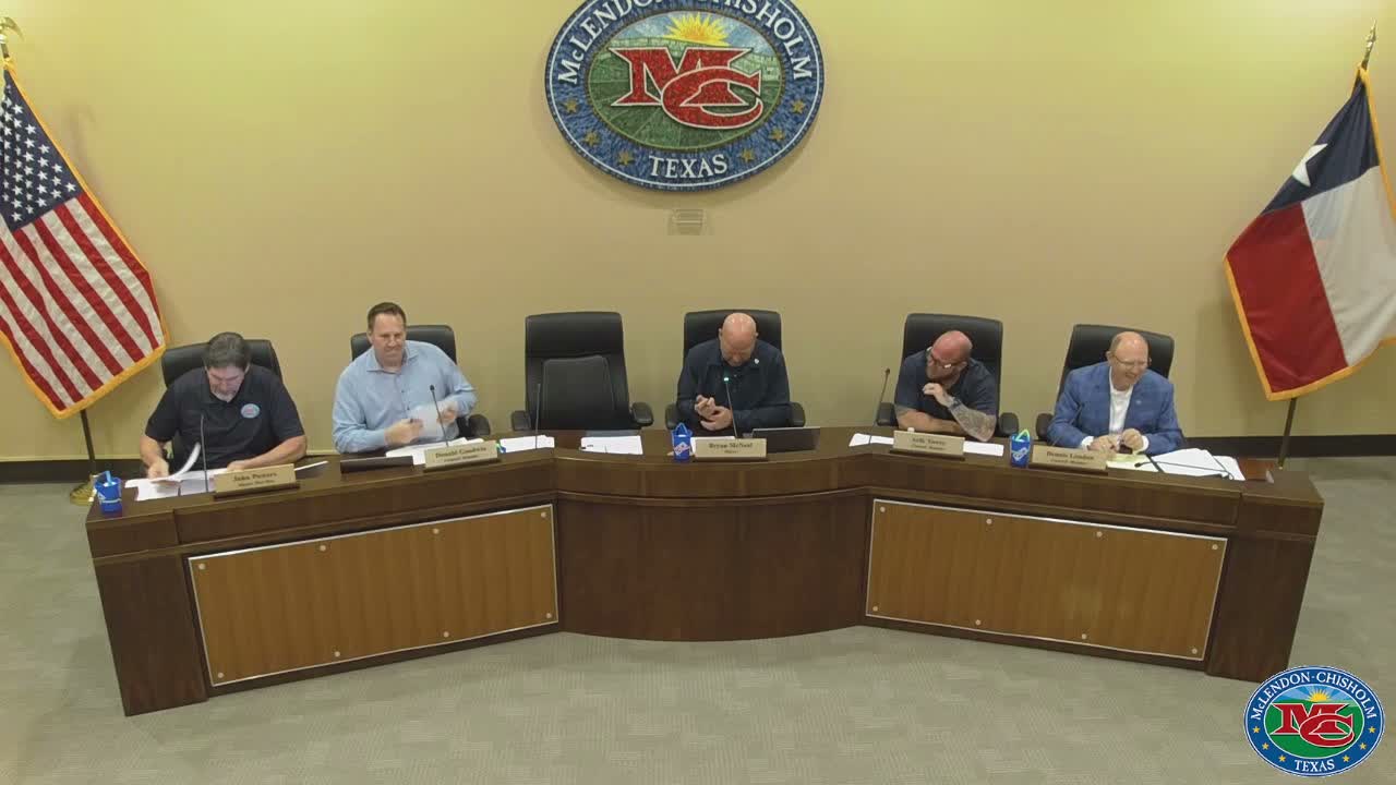 The McClendon Chisholm City Council approved several unanimous items during the meeting, including a site plan amendment for a 1.5‑acre property at the southeast corner of FM 550 and State Highway 205, a resolution to designate a disaster recovery/grant administrator, selection of emergency architectural/engineering services for FEMA project implementation, and multiple advisory committee appointments.