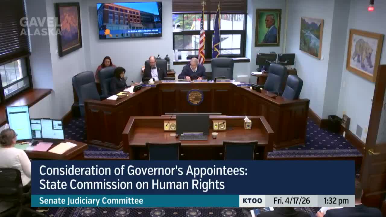The Senate Judiciary Committee on April 17 forwarded Grace Salazar’s nomination to the Alaska State Commission on Human Rights to a joint session after her testimony and without public comment; Salazar said she began serving in October after a gubernatorial appointment and is awaiting legislative confirmation.