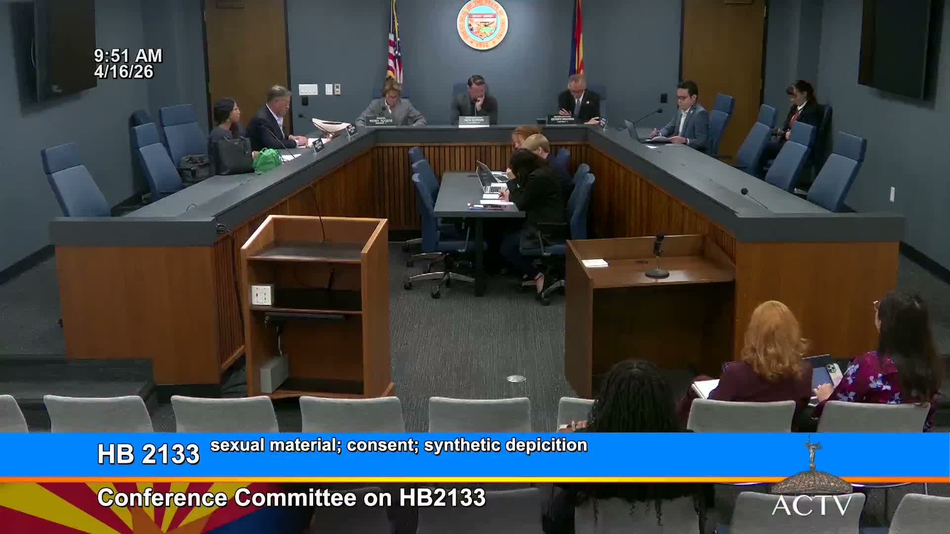 House and Senate conference committees considering House Bill 2133 met April 16, 2026, and each adopted a five-page amendment to the Senate version of the bill, authorizing staff to make any necessary technical and conforming changes as recommended by the rules attorney. Both committees approved the amendment by voice vote, and then adjourned.