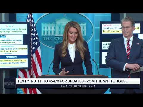 Treasury Secretary Scott Bessent and SBA Administrator Kelly Leffler told reporters that the administration's working-families tax cuts produced record refunds and broad take-up, and they urged taxpayers and employers to take steps such as adjusting withholding and using new child-account options.