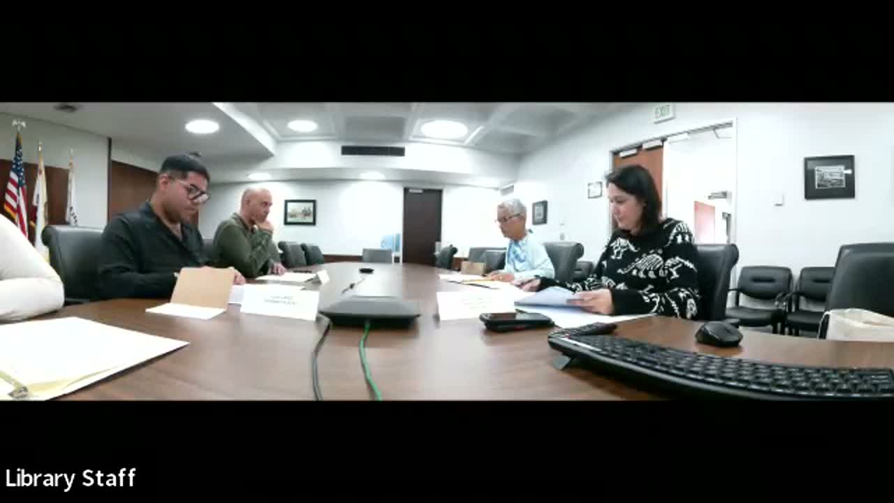 Staff also reported recent staffing changes: a part‑time librarian, Edgar, has moved to a community college district cataloging position, and a longer‑term student worker accepted a librarian post in Chula Vista. Two staff were reported to be starting immediately and the library plans to add a library aide who will split time supporting children’s services.