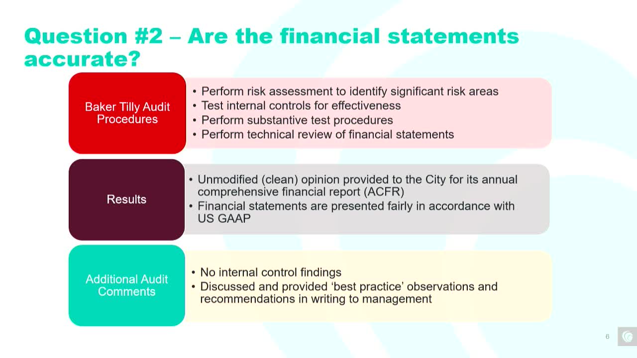 City auditors presented a largely positive report to the Idaho Falls City Council on April 20, issuing a clean opinion on the city's fiscal year 2025 financial statements while identifying one notable compliance control gap. Kevin, an audit director with Baker Tilly, told the council the firm issued the unmodified opinion on April 2 and found no audit adjustments or evidence of fraud, waste or abuse.