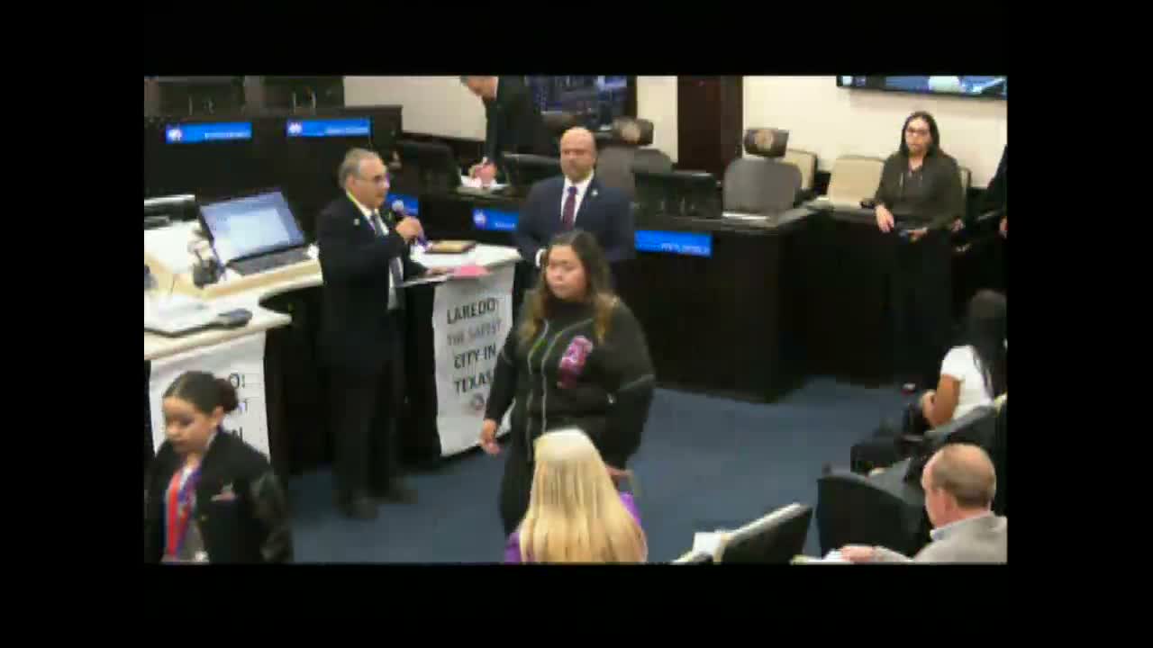 Mayor Victor D. Trevino and the City Council presented certificates and photos to local student‑athletes, spelling‑bee winners and performing teams during the agenda's recognitions segment, spotlighting school and youth achievements across Laredo.