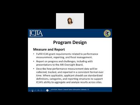 Mary Ann Dyer, program director for Adult Redeploy Illinois at the Illinois Criminal Justice Information Authority, introduced a notice of funding opportunity on 04/20/2026 seeking one or more organizations to provide statewide training, technical assistance and development (TTAD) to ARI grantees.