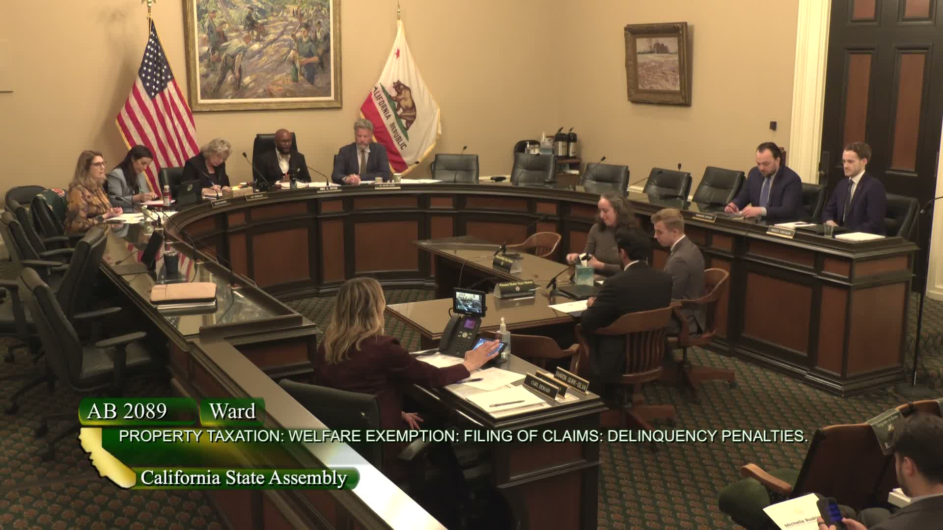 AB 2089 would streamline the welfare property tax exemption for affordable housing by allowing electronic signatures, easing recertification timing, and extending protections during ownership transitions; assessors and county treasurers warned of operational burdens and requested targeted amendments.